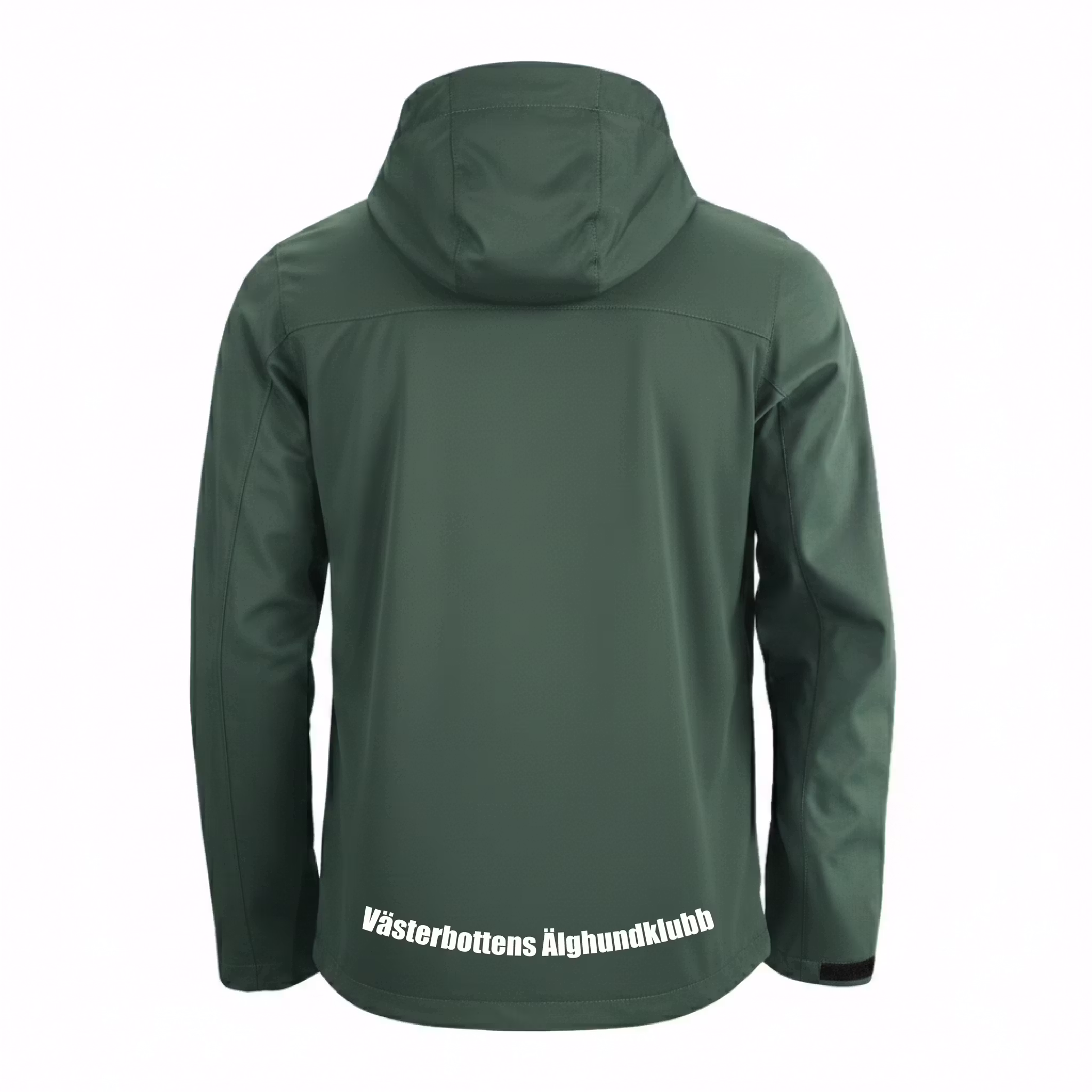 Västerbotten Älghundklubb märke på höger bröst samt nere på jackan på baksidan
